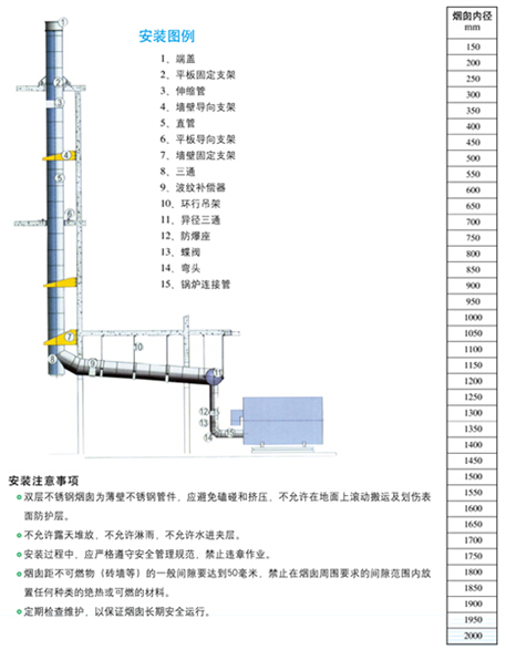 煙囪每個部件的內(nèi)、外筒及隔熱材料出廠前組裝為一體,現(xiàn)場安裝時,只需擰緊螺釘即可,無須現(xiàn)場焊接、鉚接,使安裝方便、快捷。